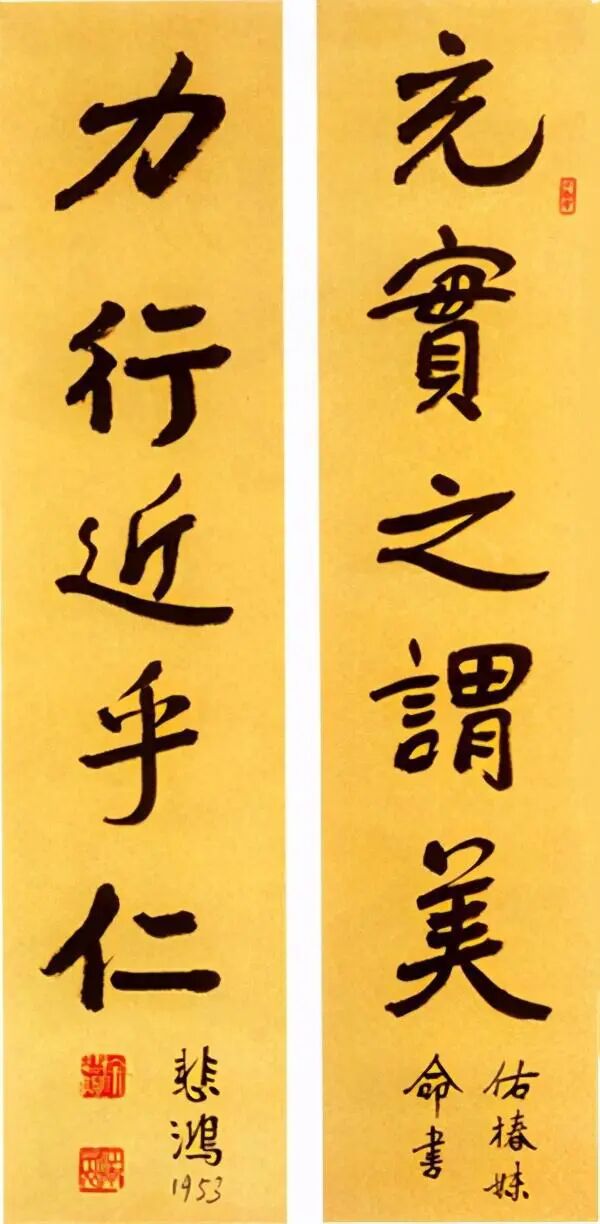 徐悲鸿《行书五言联》 112cm×26.5cm×2 宜兴徐悲鸿纪念馆藏