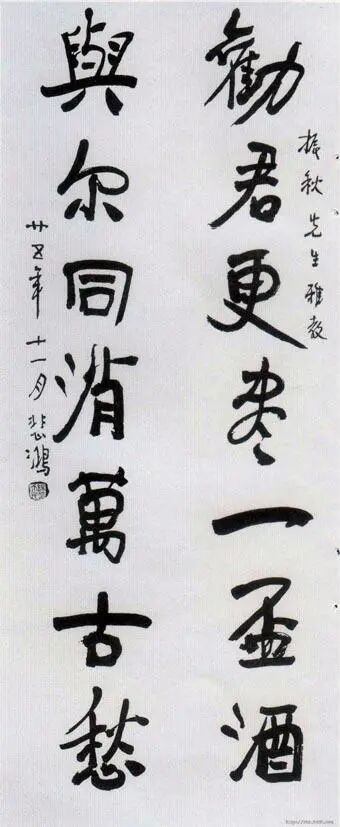 徐悲鸿《行书四言》纸本 纵128.8cm 横31.2cm 北京故宫博物院藏