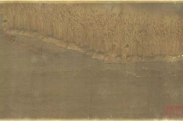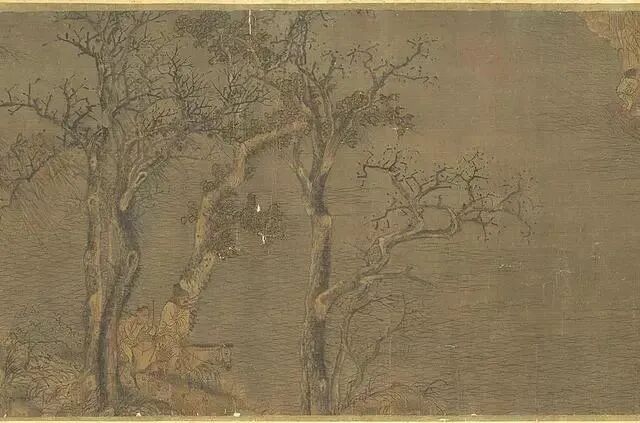 诗画里的小寒,不管是丛丛寒木、点点微雪,还是披衣独立、围炉煮雪,都别有一番情趣。在敦煌榆林窟第3窟壁画里,枯木屹立于寒风中,鹿角般的枝桠牵挂着漫散的烟云。而五代《江行初雪图》绘冬寒时节江上渔民捕鱼劳作、江岸行旅瑟瑟前行。两岸芦苇、竹枝在风中摇曳,渔民或拉纤或撑船,或张网或炊事,给萧瑟冷寂的画面增添生机。